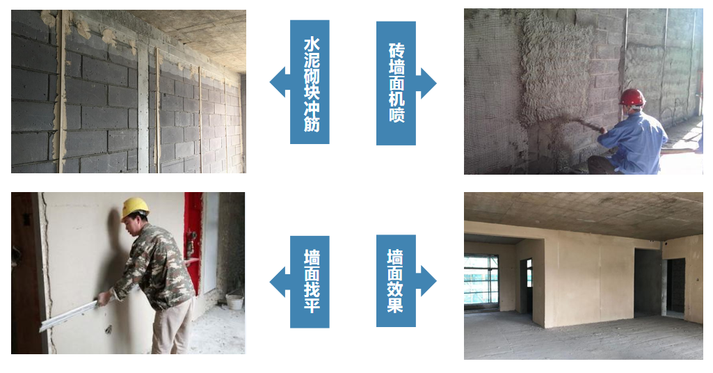 2.抹灰墻面厚找平時(shí),先涂抹一層薄灰打底,壓實(shí)并覆蓋整個(gè)基層,待其凝結(jié)硬化后再進(jìn)行再次涂抹,以免抹灰層出現(xiàn)起泡現(xiàn)象;